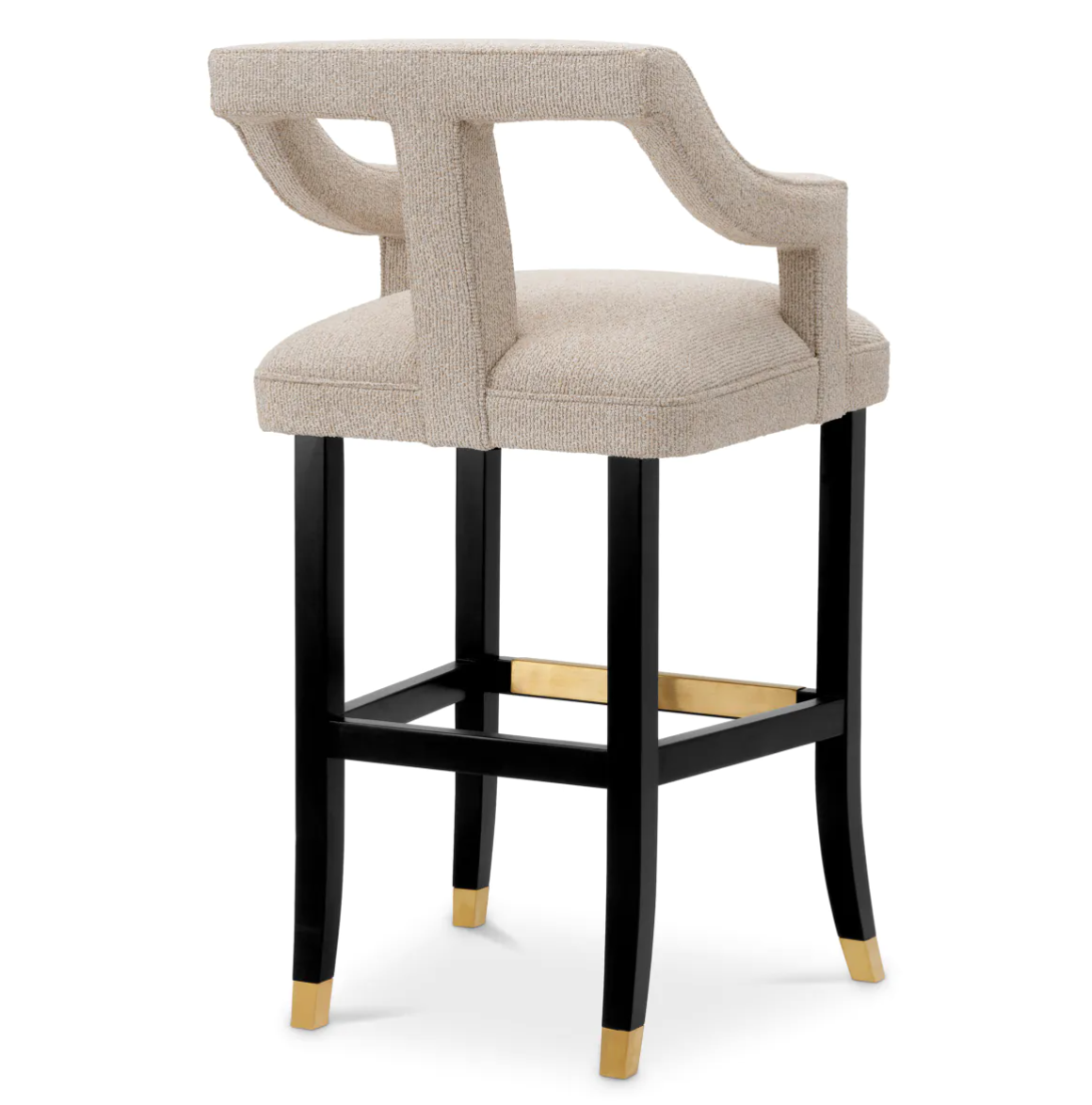 • Featuring beige Palmer upholstery and black legs with brass accents, the Roumier bar chair by Eichholtz exudes sophistication.