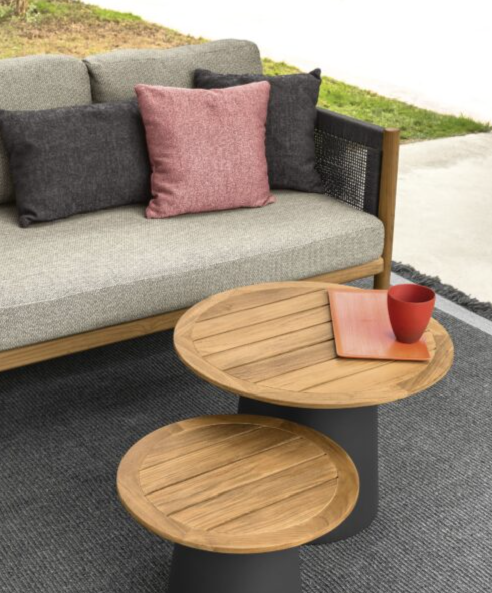 • The Dolcevita coffee table by Talenti has a lively and harmonious design. The teak top is supported by an aluminium base. The perfect balance between these elements is highlighted by the precise finish of every detail.