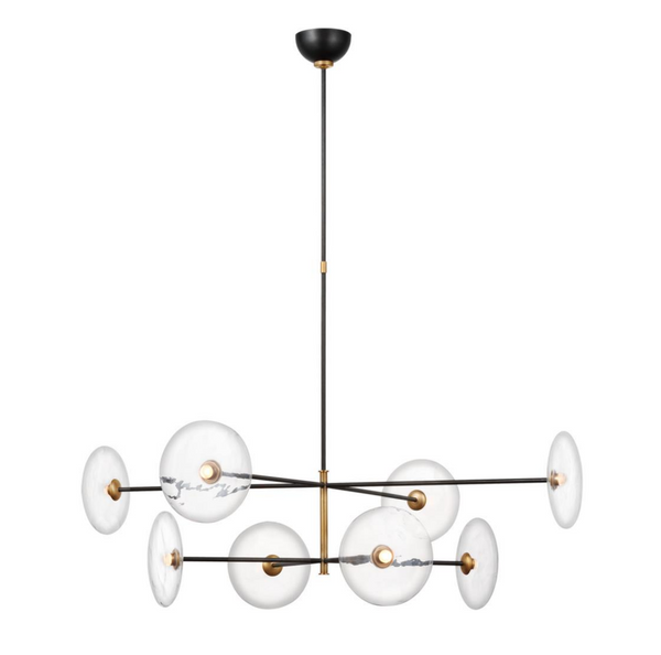 - The Calvino X-Large Ian K.Fowler chandelier by Visual Comfort in which blown glass discs appear to float on metal stems. Miniature LED bulbs create a halo effect.