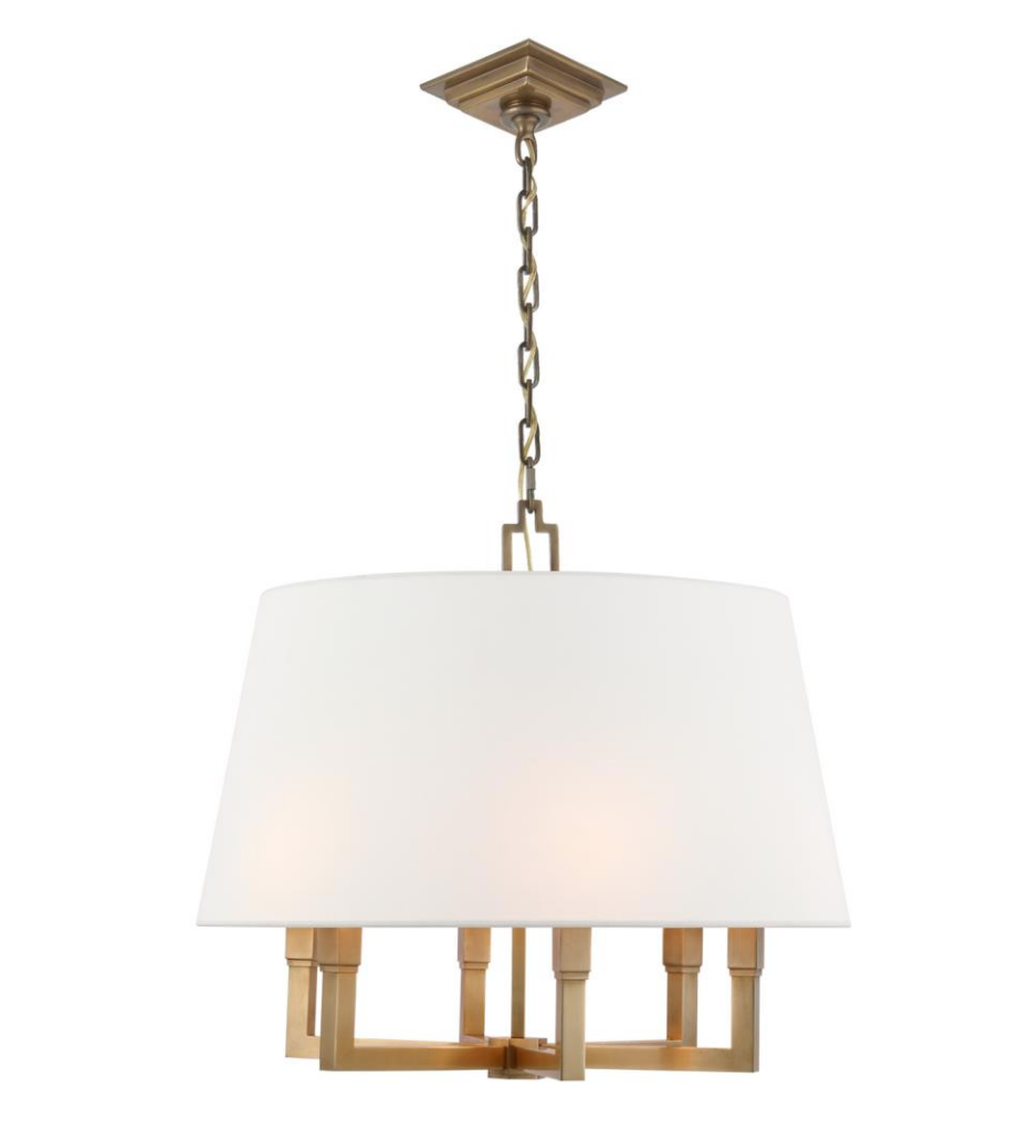 - The Square Tube pendant lamp by Chapman & Myers by Visuale Comfort presents a modern shape. The frame extends below the suspended linen lampshade giving the lamp a contemporary charm.