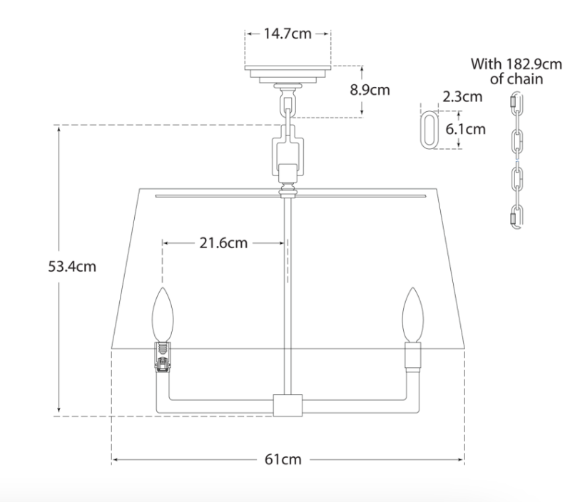 The Square Tube pendant lamp by Chapman & Myers by Visuale Comfort presents a modern shape. The frame extends below the suspended linen lampshade giving the lamp a contemporary charm. Dimensions: H 53.3 x W 61 cm