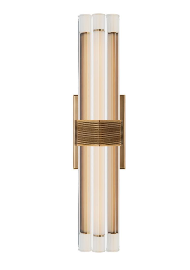 - The Fascio 18" wall lamp designed by Lauren Rottet by Visual Comfort in hand rubbed antique brass finished with crystal. The lamp is fitted with an LED light.