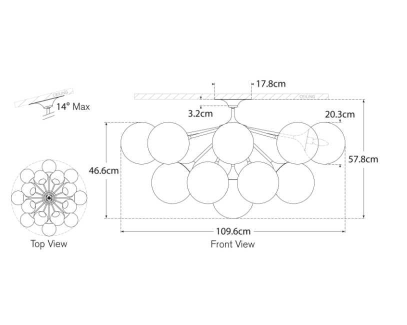 'Cristol 43' plafond by Aerin by Visual Comfort in hand-polished antique brass with white Strie glass. Dimensions: height 57.8 x 109.9cm.