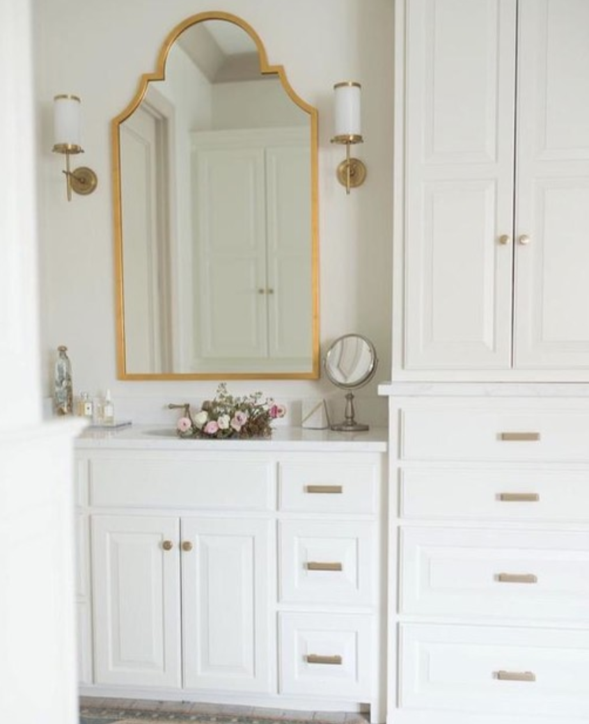 - Bryant Bath wall lamp designed by Thomas O'Brien by Visual Comfort in hand-brushed antique brass with a white glass shade with brass edges. The lamp has a socket for an E 27 bulb.