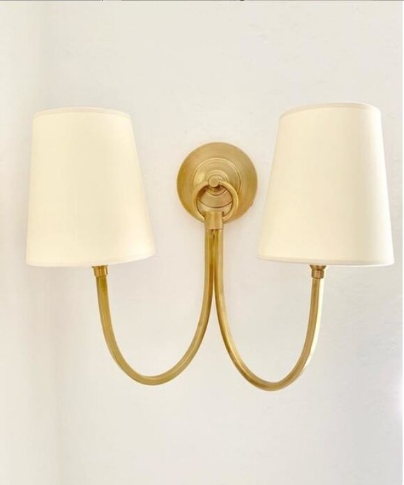 - Reed Double wall lamp by Thomas O'Brien in brown with linen lampshade.