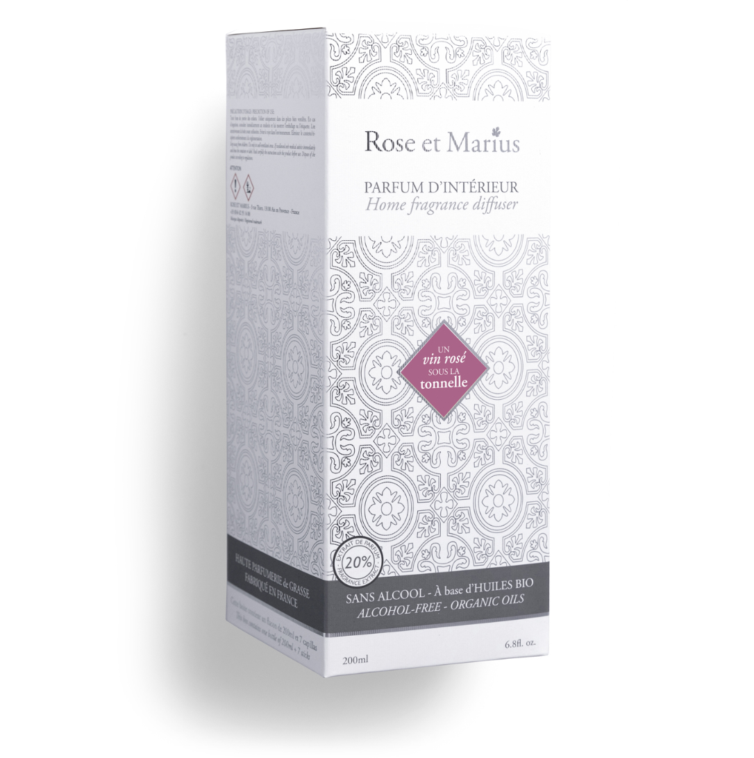 • Perfume for the home by Rose et Marius inspired by notes of pink wine from Provence: the freshness of grapes, red berries and dark fruits harmonises with the warm tones of fine woods. Does not contain alcohol.