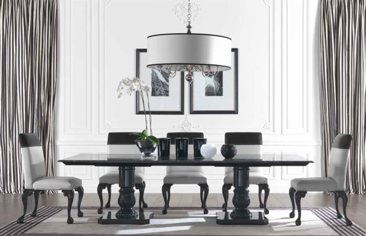The Churchill Gianfranco Ferré Home table features two linden wood bases with a GF Black Lacquered finish. The top is Category A marble. Dimensions: L 280 x D 120 x H 78 cm