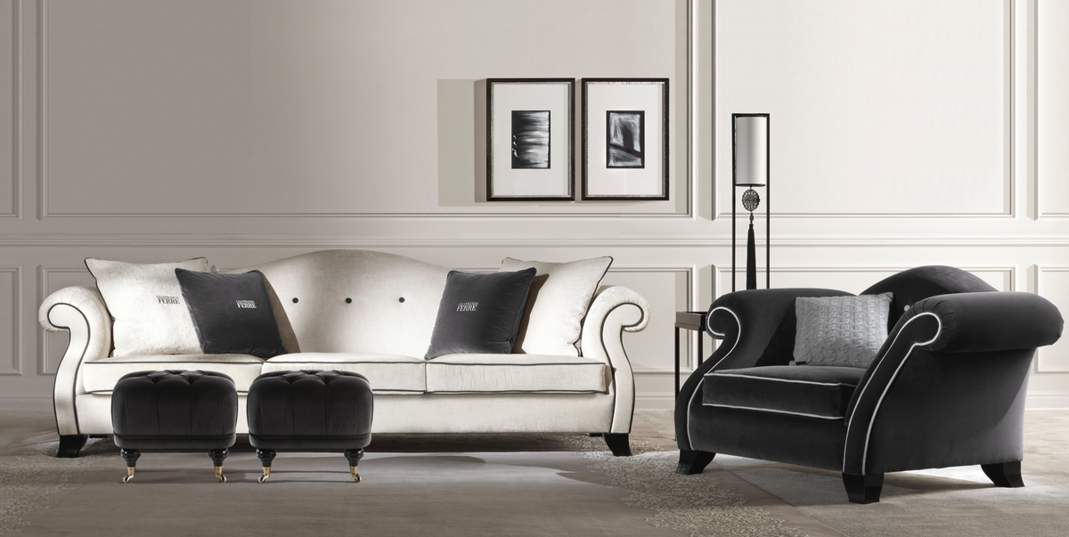 - The Harmony armchair by Gianfranco Ferré Home is crafted from beechwood and foam. It features a Category A fabric upholstery and wooden legs with a GF Black Lacquered finish. Dimensions: L 126 x D 98 x H 90 cm