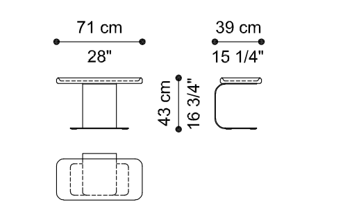 The Seattle coffee table by Gianfranco Ferré Home features a calendered steel frame with a matte black finish or upholstered in saddle leather from the collection. The solid wood tray is tulip-shaped. Dimensions: L 71 x D 39 x H 43 cm