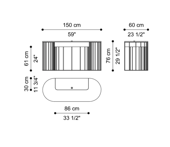 The Doppler dressing table by Gianfranco Ferré Home is made of multi-layer veneered wood. It has a black metal base. It features a hinged door with a natural mirror inside. It is lined with microfiber. Dimensions: L 150 x D 60 x H 76 cm