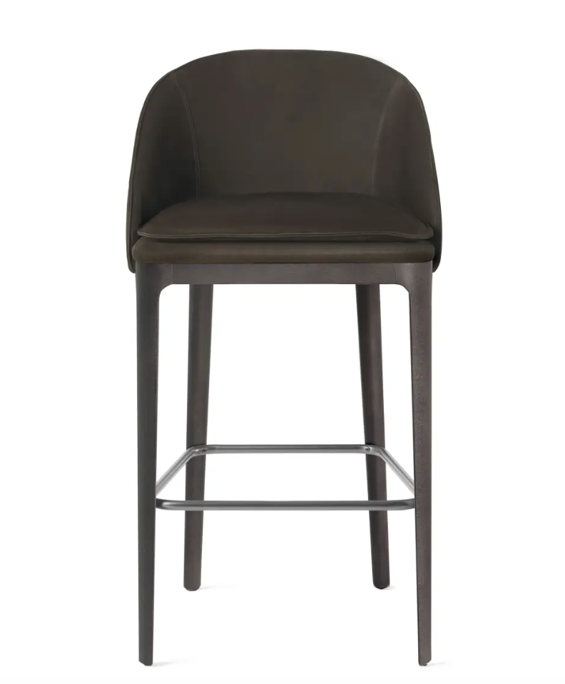 - Rio bar stool by Gianfranco Ferré Home in solid beech and foam. Leather upholstery. Smokey Grey stained beech legs. Black Chrome decorative elements.