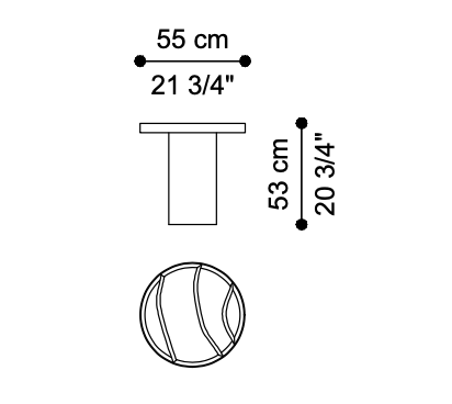 The Sahara coffee table by Roberto Cavalli Home Interiors features a polished or brushed metal frame. The top is a polished Black Marquina marble. It is partially engraved with the RC monogram. Dimensions: ø 55 x h 53 cm