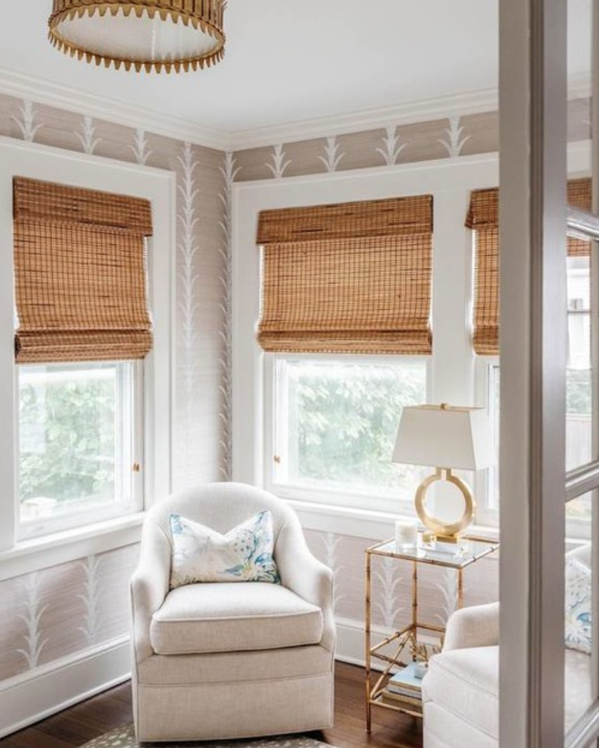 - Ring table lamp by E.F. Chapman by Visual Comfort in brushed antique brass with a linen shade.