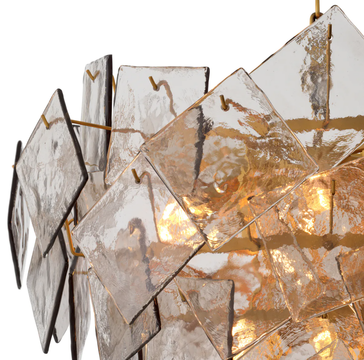 - The Eichholtz Biltmore Chandelier, in antique brass with light smoked glass, showcases a calm, muted color palette that balances bold, metallic warmth with ethereal transparency. Dimensions: Ø 80 | H. 65 cm