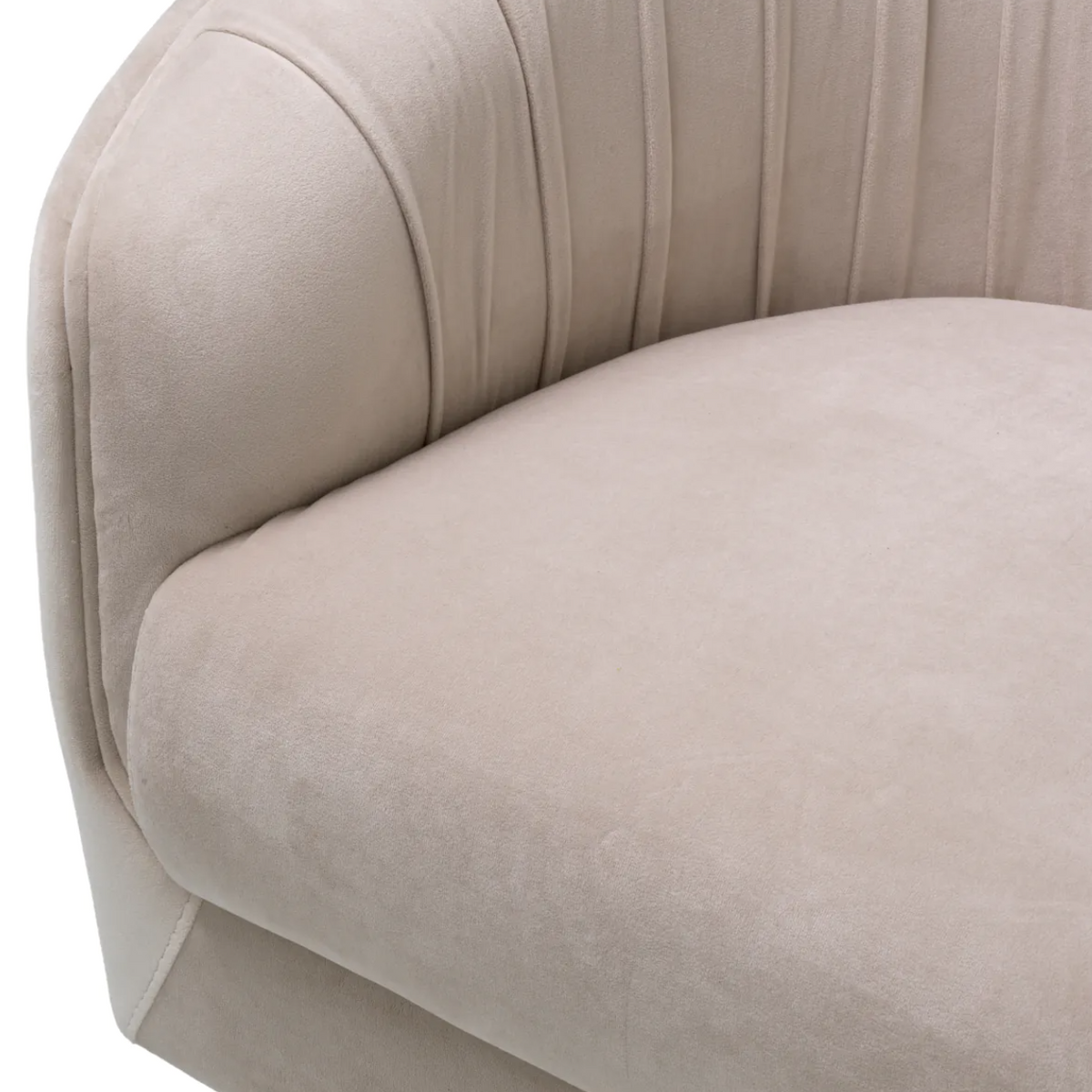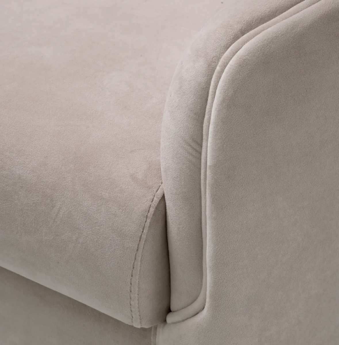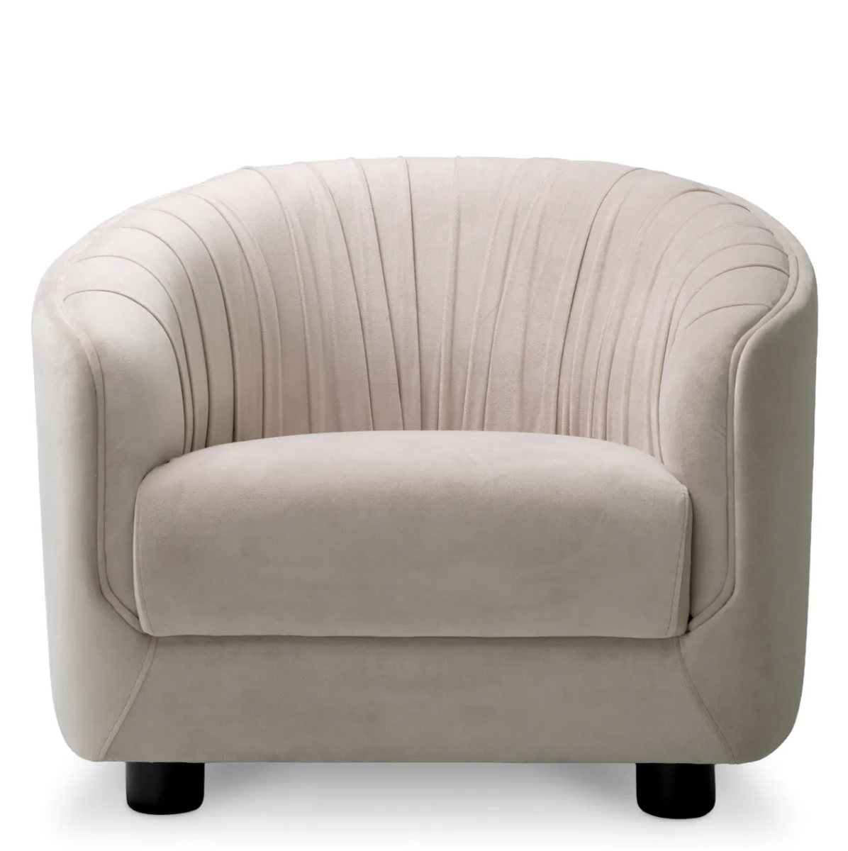 - The Jameson armchair by Eichholtz in cream Amaro is upholstered in soft, lightweight fabric. Slender black legs add a modern touch.