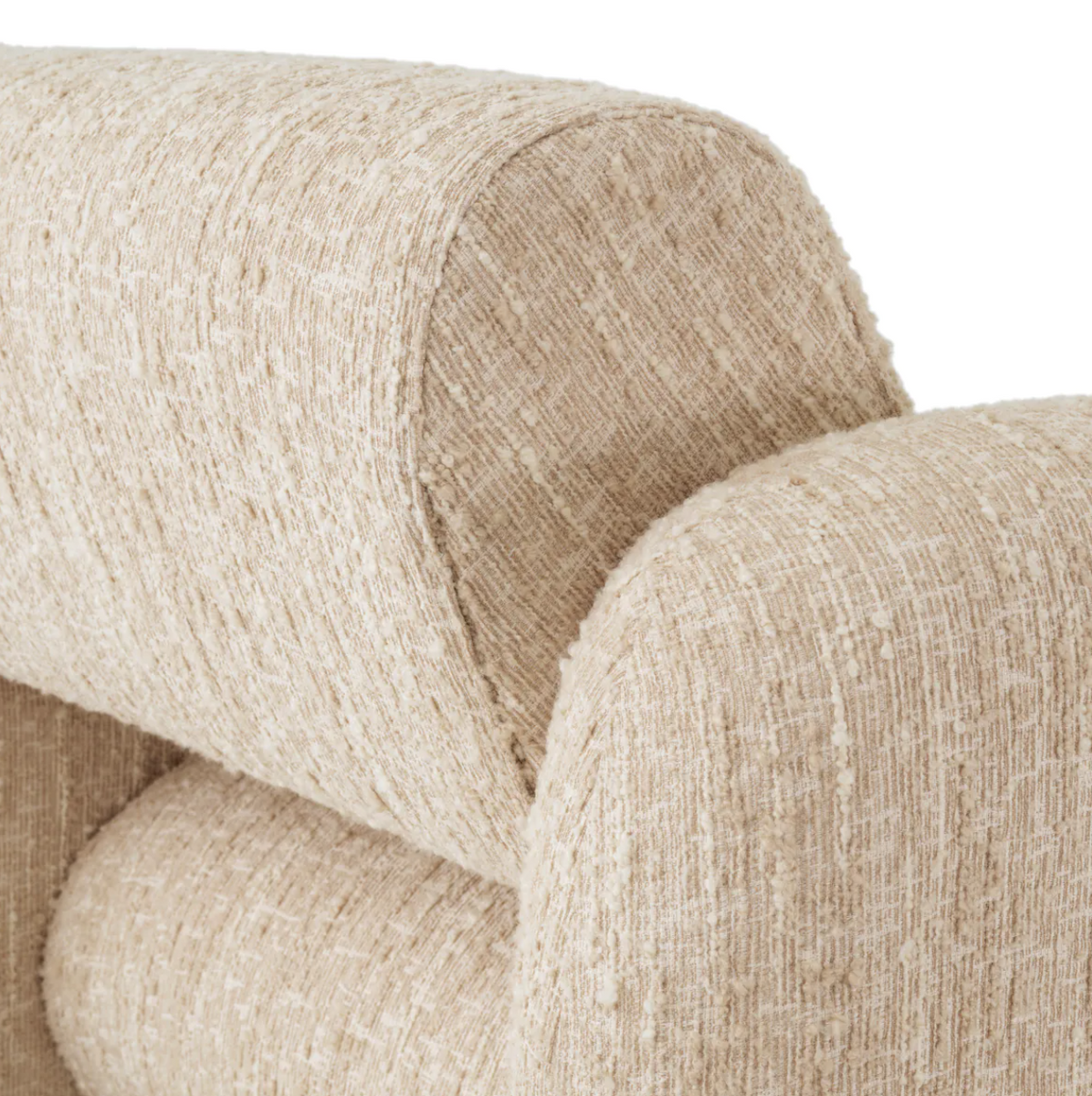 - The Eichholtz Vesper Armchair is upholstered in luxurious Sonata fabric in a delicate beige-sand hue. Bouclé upholstery and smooth contours create a blend of comfort and style. Dimensions: W. 100 | D. 96 | H. 80 | SD. 66 | SW. 60 | SH. 50 | AH. 68 cm