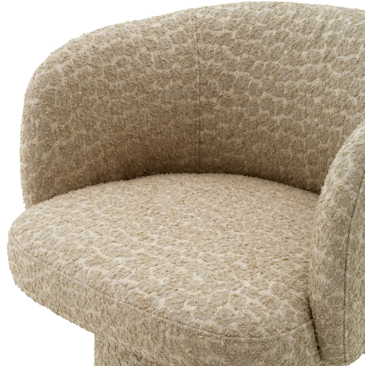 - The Marly Swivel Chair by Eichholtz, with its beige upholstery and brown accents, exudes sophistication and comfort. It's a blend of historic charm and modern luxury.