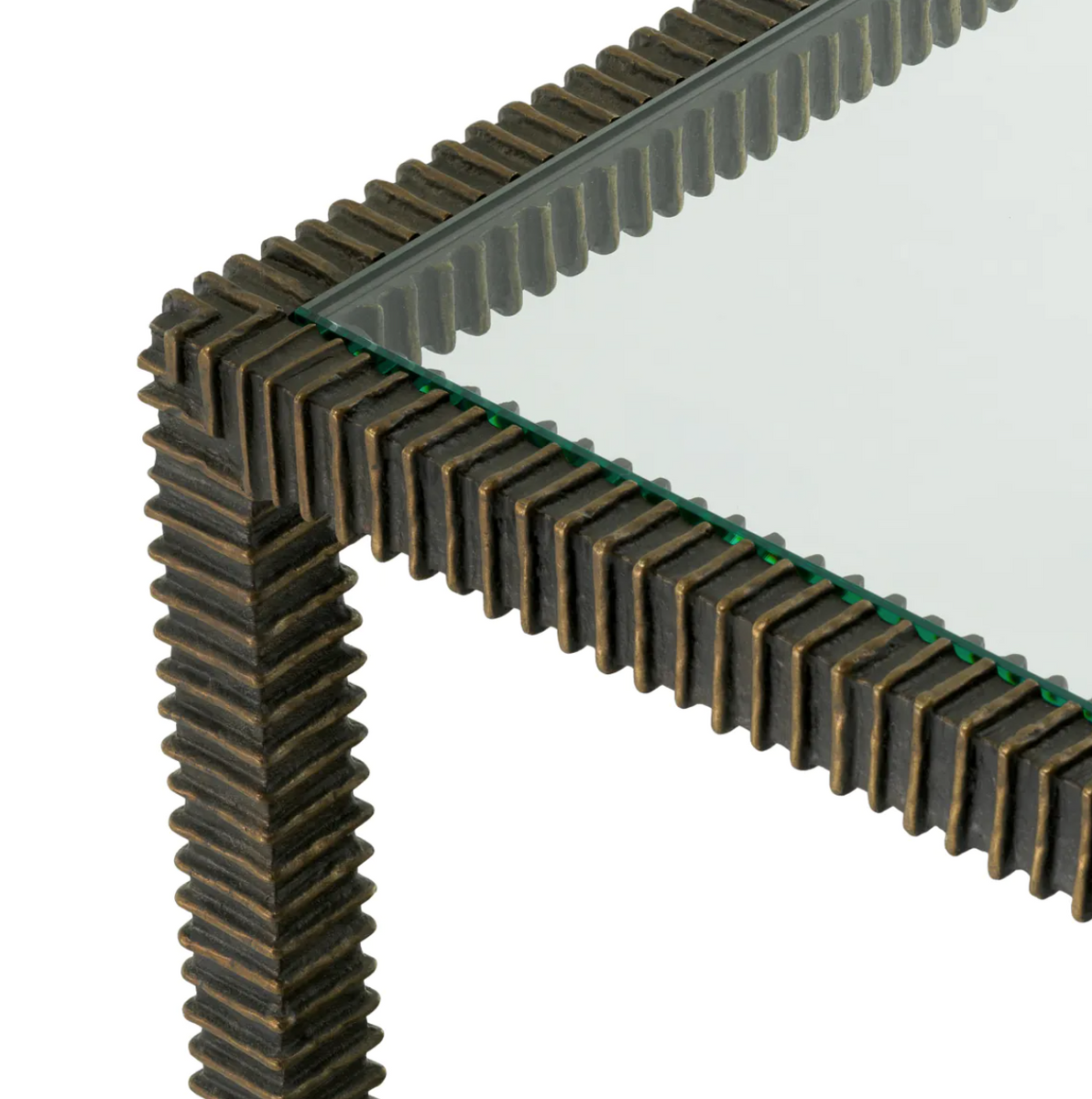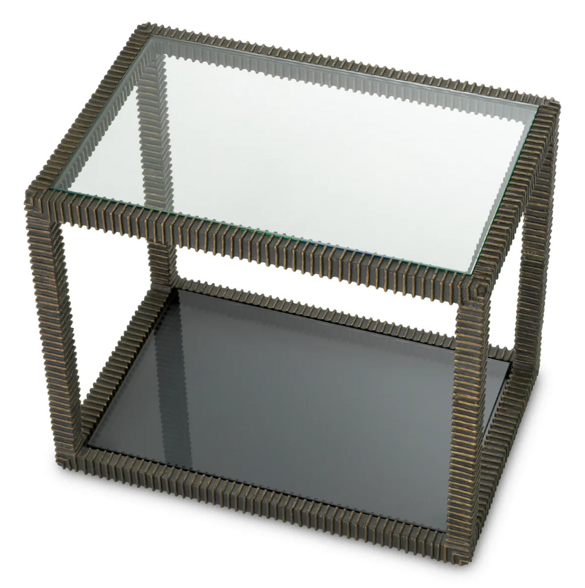 Inspired by the majesty and geometry of the Metropolitan Museum of Art, the Bethesda Side Table by Eichholtz, with its bronze frame and clear or smoked glass top, brings elegance to any living room. Dimensions: L 40 | W 60 | H 40.5 cm