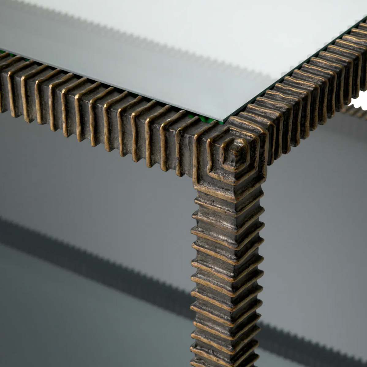 - Inspired by the majesty and geometry of the Metropolitan Museum of Art, the Bethesda Side Table by Eichholtz, with its bronze frame and clear or smoked glass top, brings elegance to any living room.