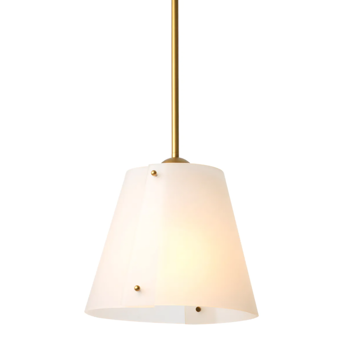 - The Eichholtz Trianon pendant lamp in an antique brass finish exudes subtle elegance with its distinctive double halves of milky white glass.