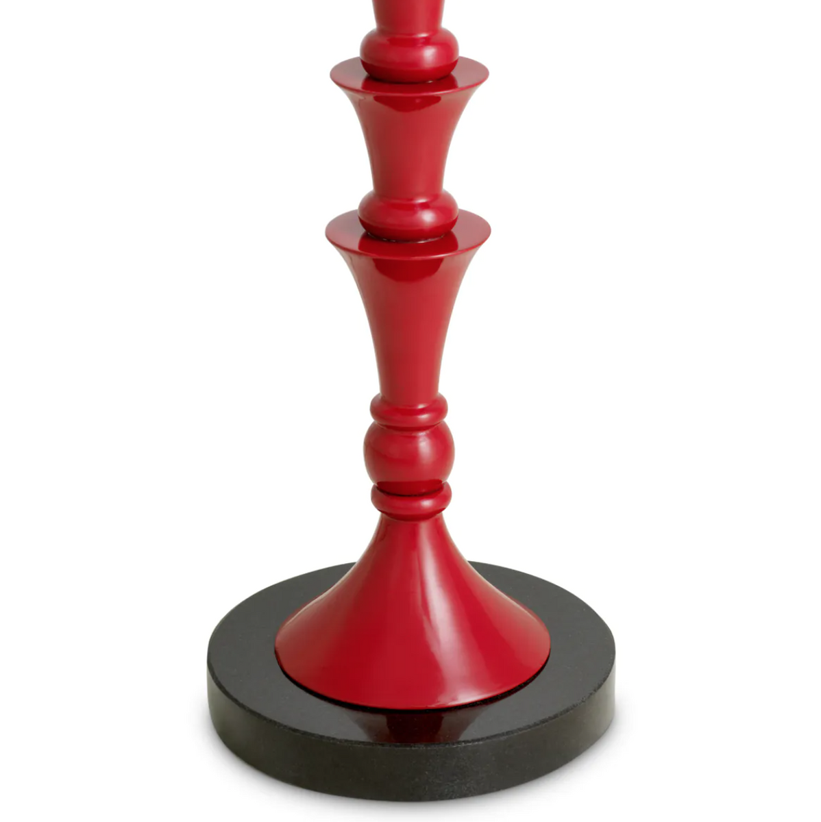 The Arabella floor lamp by Eichholtz features a black granite base in a deep burgundy shade, with an elegant wooden frame paired with a silk-finish lampshade. Dimensions: W 17 | W 55 | H 162.5 cm