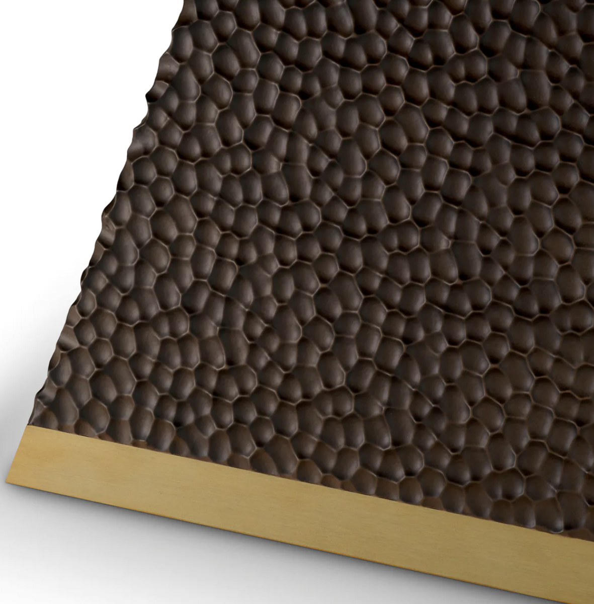 - The Eichholtz Rexton Table, crafted from ebony oak veneer with an antique brass finish, combines rich tones with a modern silhouette.