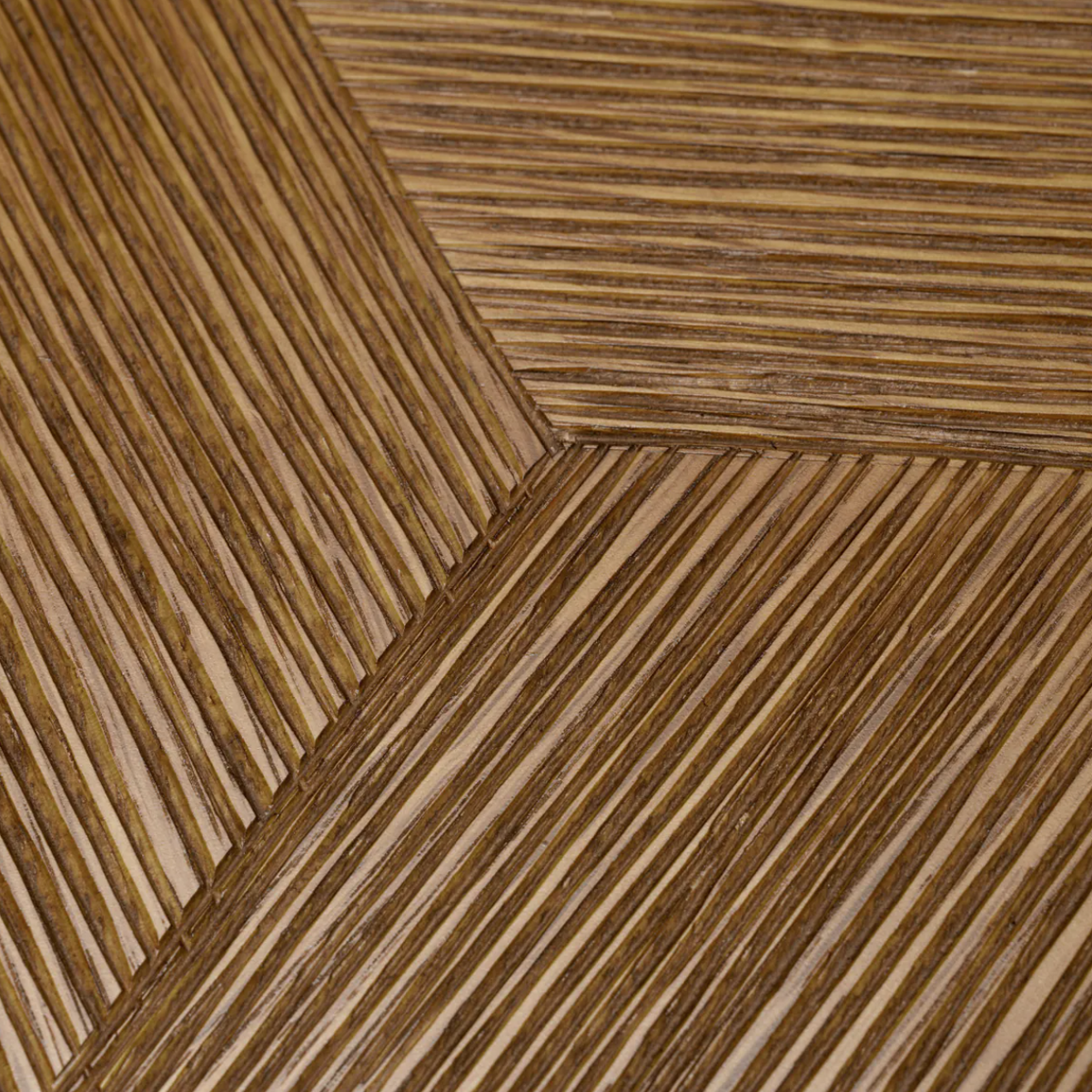 - The Velutto coffee table from Eichholtz, adorned with a warm caramel-colored oak veneer and brushed brass details, offers timeless charm.