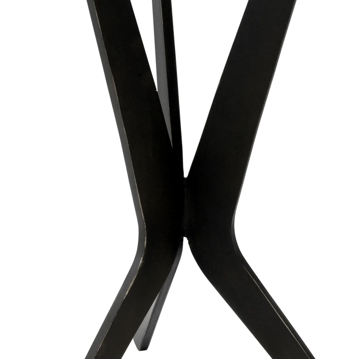 - The Malone side table by Eichholtz features a Mid-Century Modern design in brown with a round black granite top. Dimensions: Ø 30.5 x H 52 cm