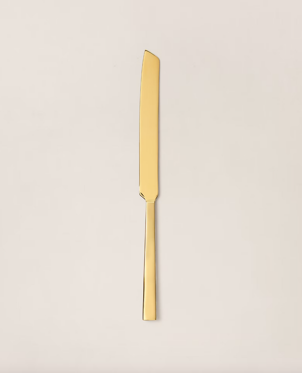The Ralph Lauren Home Academy four-piece serving set, crafted from polished stainless steel, boasts a simple, modern silhouette and will be an elegant addition to any meal. Dimensions: Large serving spoon, 25.5 cm long. Large serving fork, 25.5 cm long. Cake server, 26 cm long. Cake knife, 31 cm long.