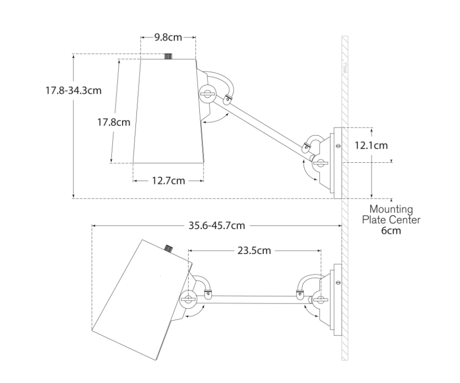 - The Benton Single Library wall lamp by Ralph Lauren Home is polished nickel and adjustable in height and length. A smooth black leather shade adds a touch of elegance. Dimensions: H17.8 - 34.3 x W12.7 cm