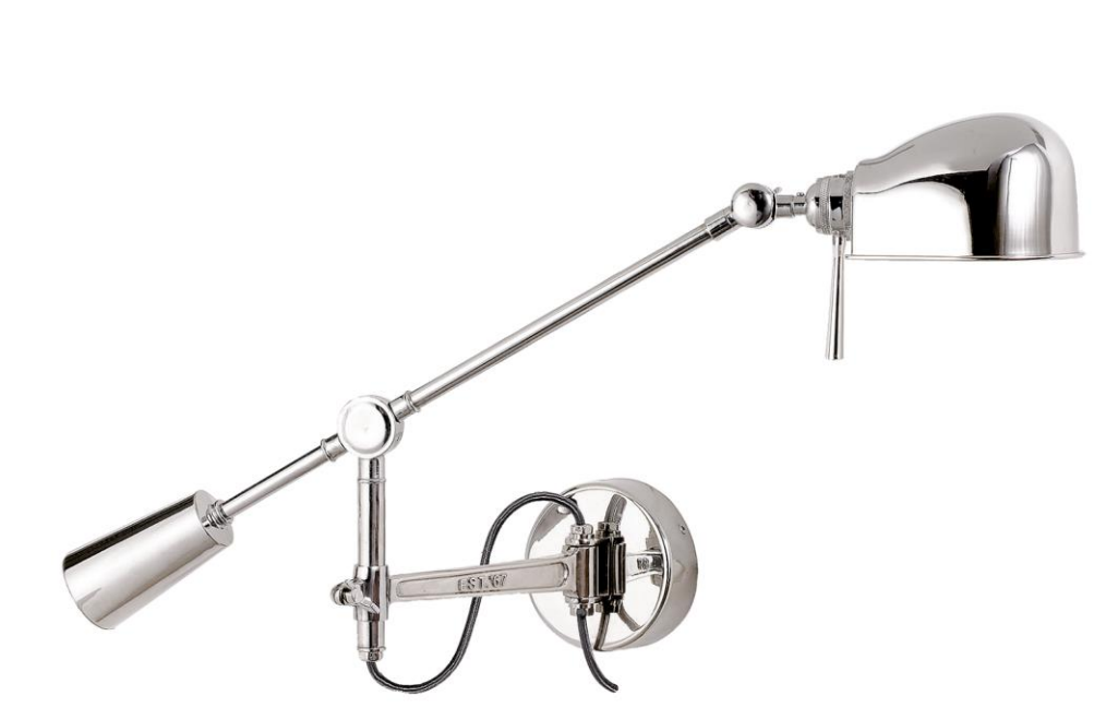 - The RL '67 Boom Arm Wall Lamp by Ralph Lauren Home features polished nickel arms that articulate to multiple positions, providing focused light where needed. Dimensions: H 47.6 x W 35.6 cm
