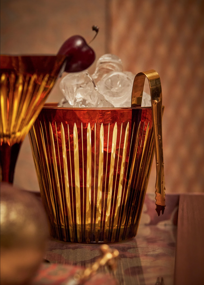• The hand-carved, amber-colored L'Objet champagne cooler from the Prism collection brings a touch of elegant glamour to your table. Paired with elegant tongs, it's the perfect finishing touch to your bar set.