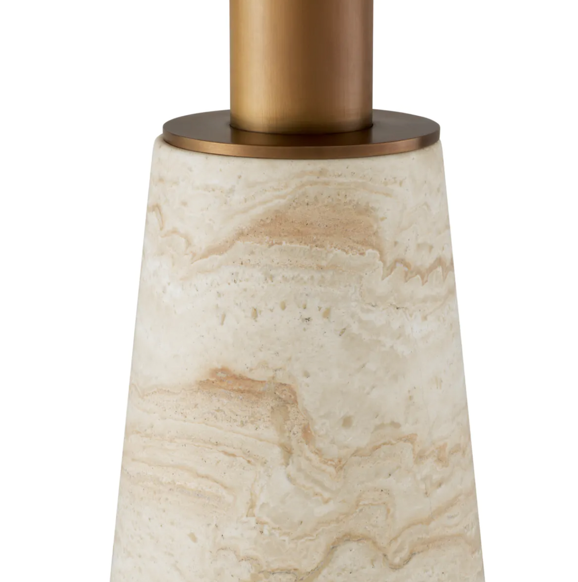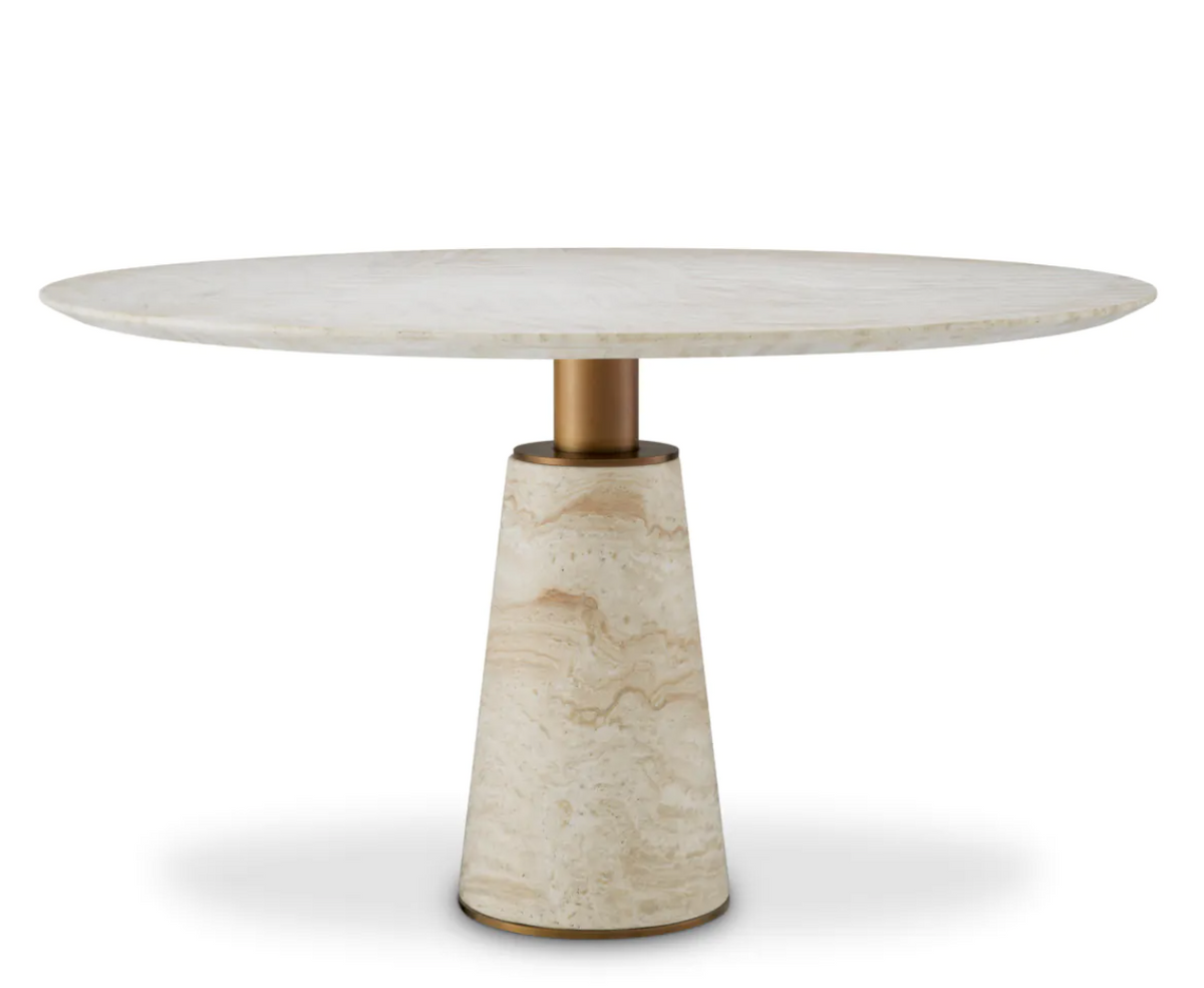 - The Eichholtz Genova Table combines the natural beauty of travertine with a brushed brass finish, creating an elegant accent in your dining room. The warm, earthy tones lend subtle luxury and exceptional harmony to your space.