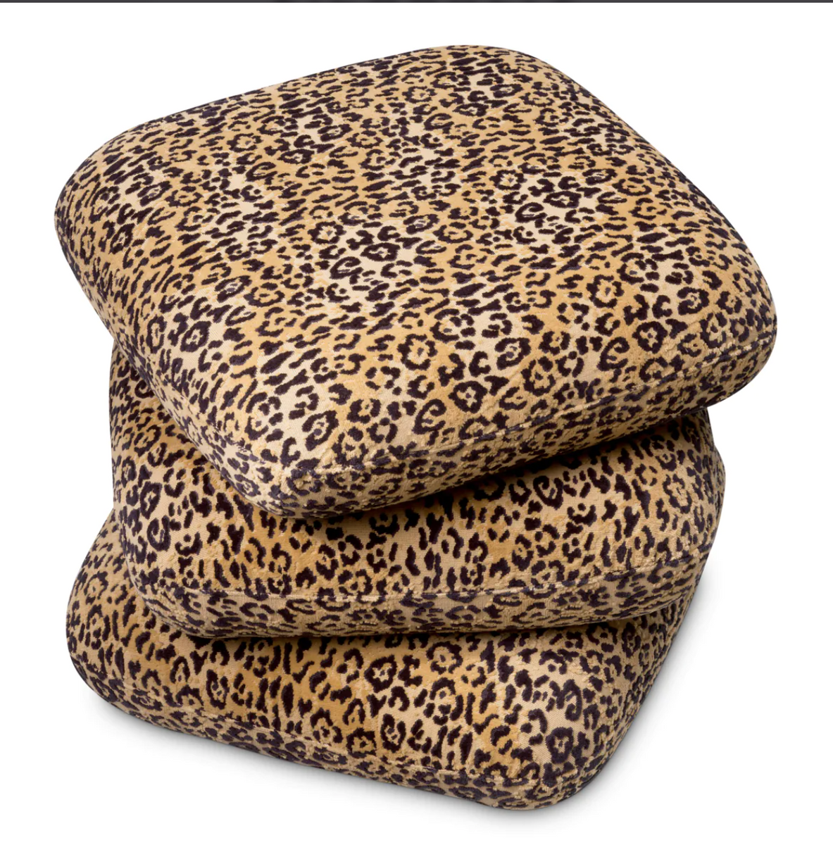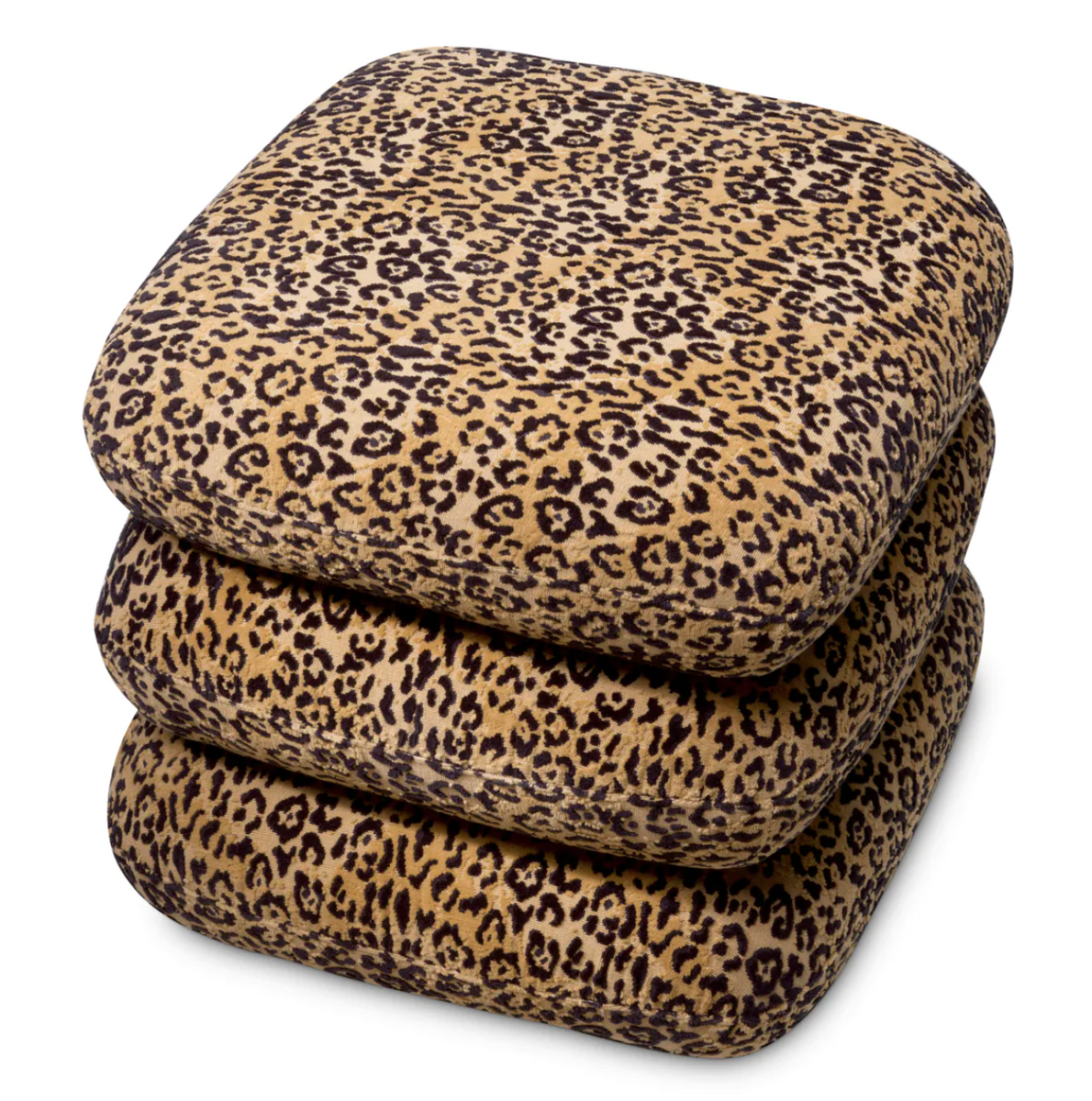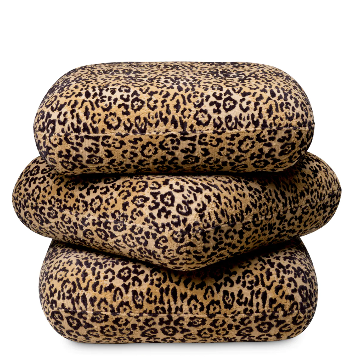 • The Greenwich Pouf by Eichholtz impresses with its luxurious leopard print finish. Its construction is based on three rotating layers.