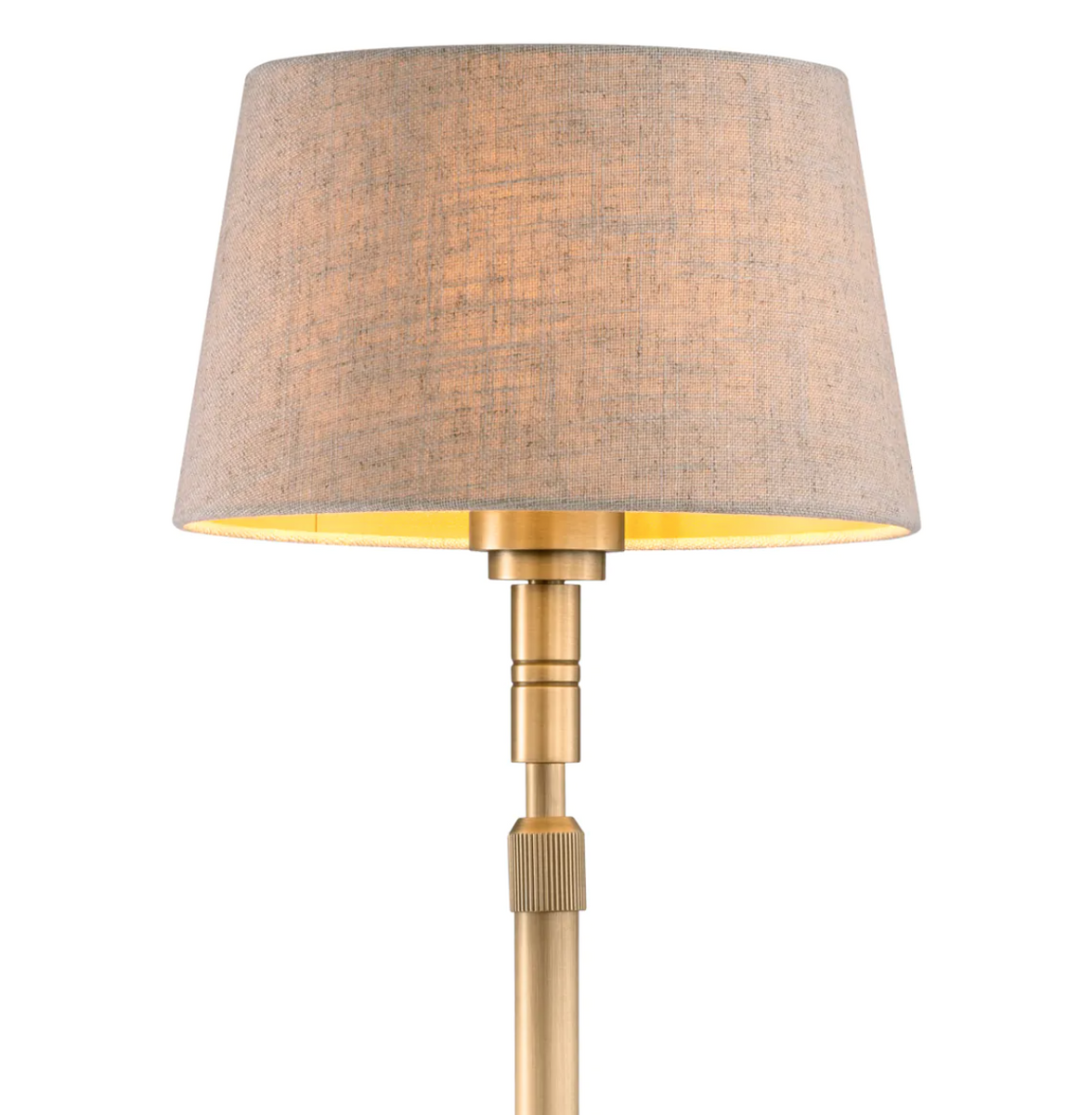 - Eichholtz Tryon Floor Lamp in brushed brass, adjustable in height with a handmade linen blend shade.