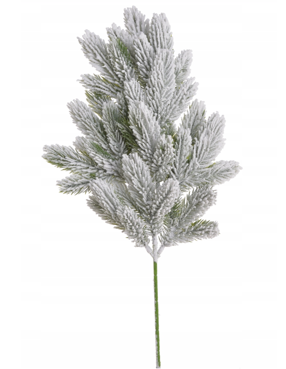 - Christmas ornament - a snow-covered pine branch, covered in a durable artificial snow effect, with a green stem with flexible wire inside. Perfect as a standalone decoration for a vase or as an addition to a bouquet or wreath.