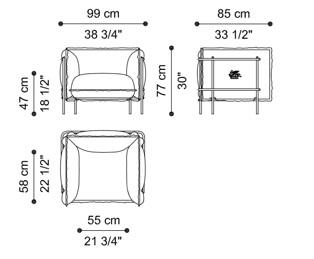 - Dimensions: L 99 x D 85 x H 77 cm