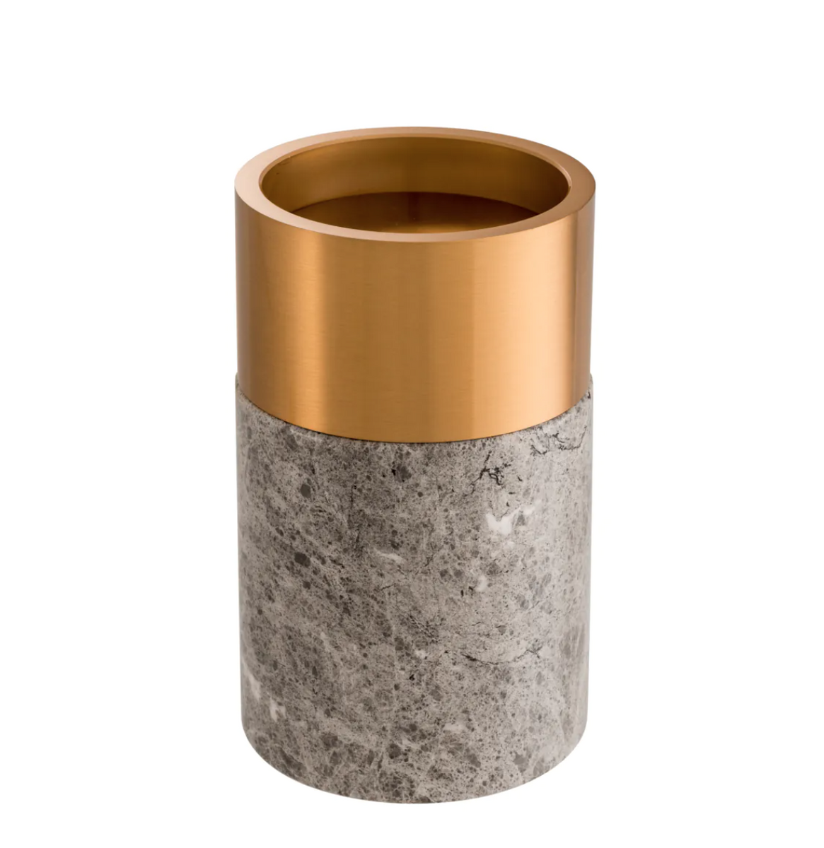 - This set of three Eichholtz candlesticks combines gray marble and brass, lending elegance to a simple design. They complement contemporary, minimalist, urban, and mid-century modern interiors. Dimensions: ø 12 x H 16 | 20 | 25 cm