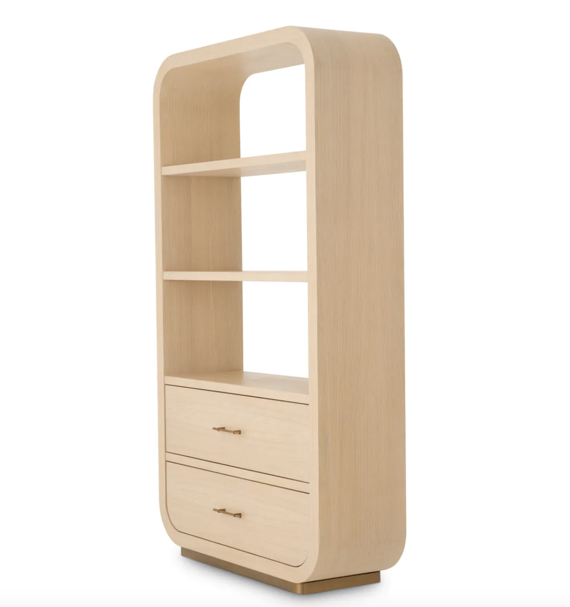 - The Quinton bookcase by Eichholtz exudes subtle warmth thanks to its natural oak veneer and brass accents. The elegant combination of noble materials gives the interior a timeless character.
