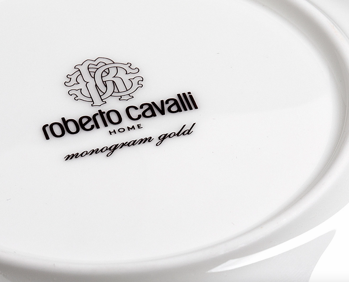 - This set of six Roberto Cavalli coffee cups from the Monogram Gold collection are crafted from high-quality bone china and plated with 24-karat gold.