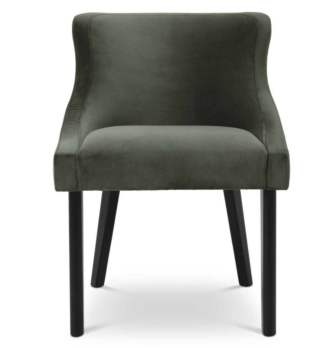 - The Eichholtz Chavelle chair, upholstered in green Torrin velvet with a black finish, impresses with its gloss and comfort. Perfect for stylish, elegant interiors.