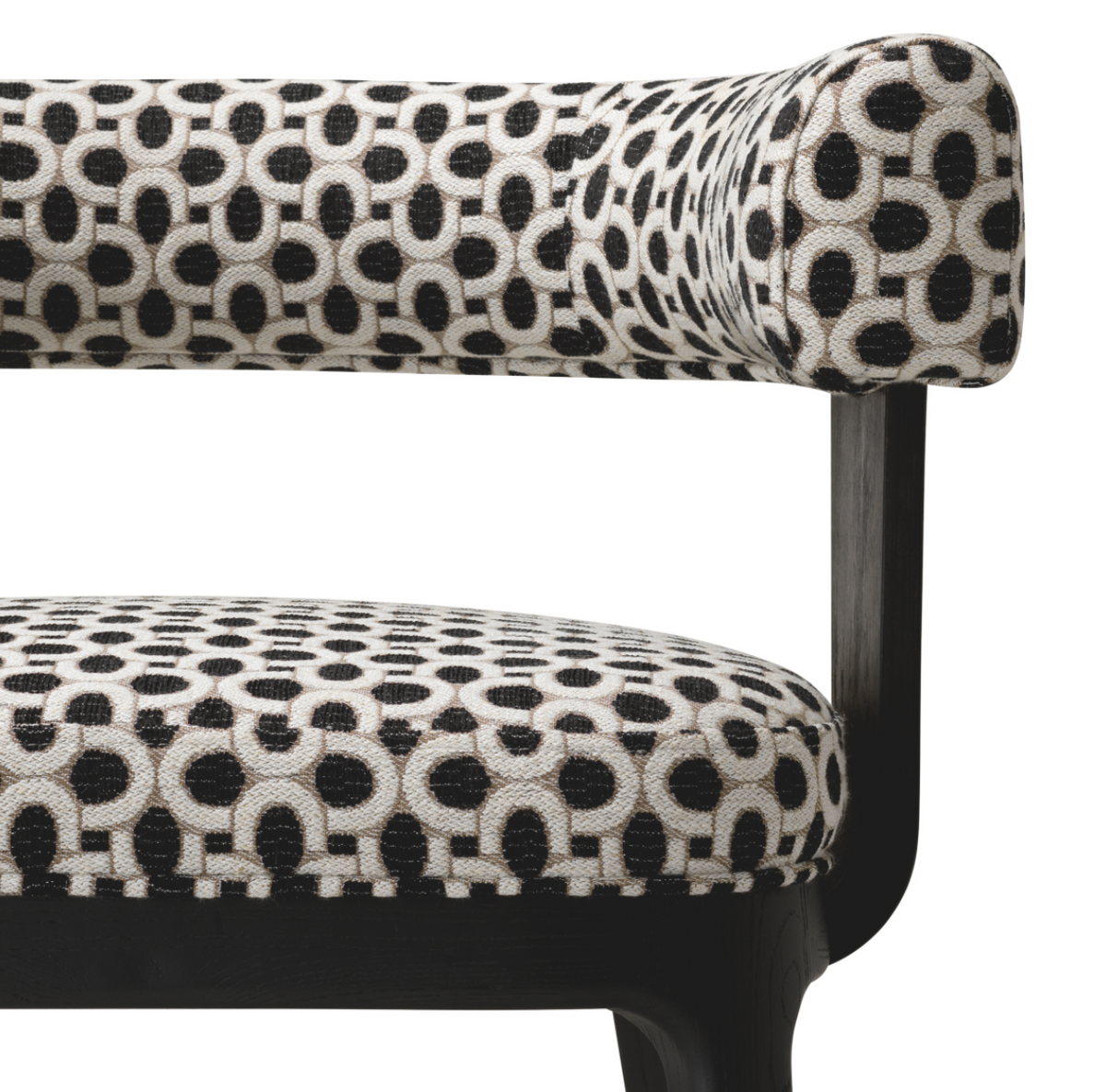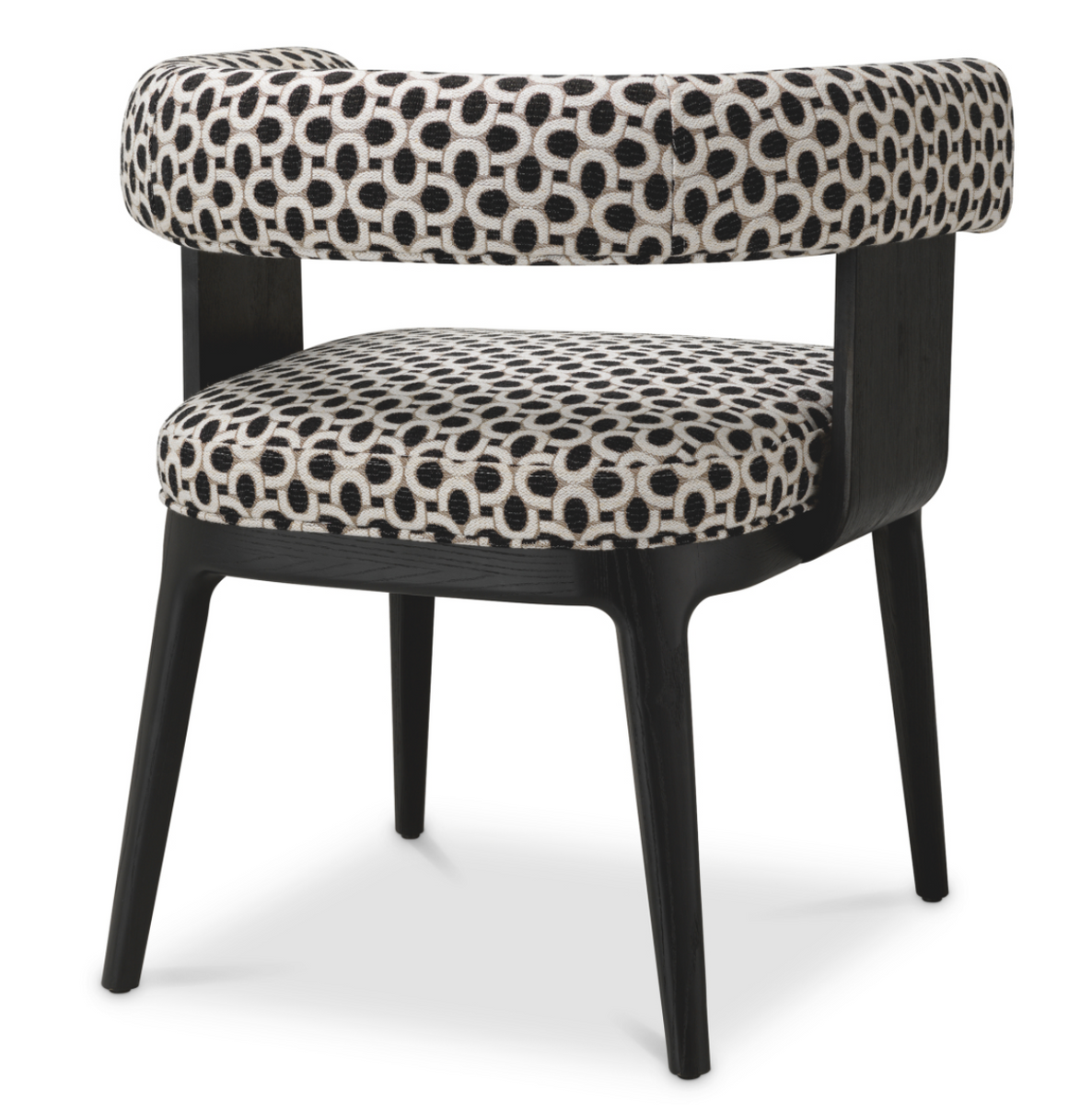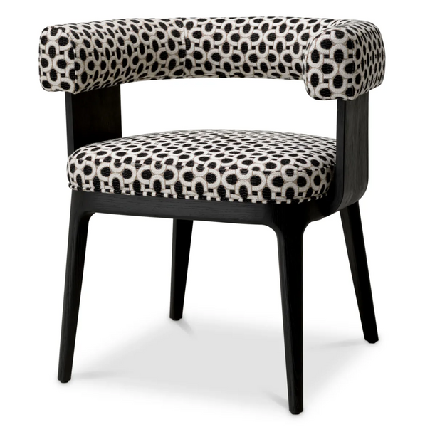 The Dubois chair by Eichholtz is synonymous with luxury and comfort. A soft cushion in Sunbeam Black fabric and a wooden structure with a black oak veneer finish create an elegant design. Dimensions: W. 69 | D. 56 | H. 73 | SD. 45 | SW. 45 | SH. 49 | AH. 73 cm