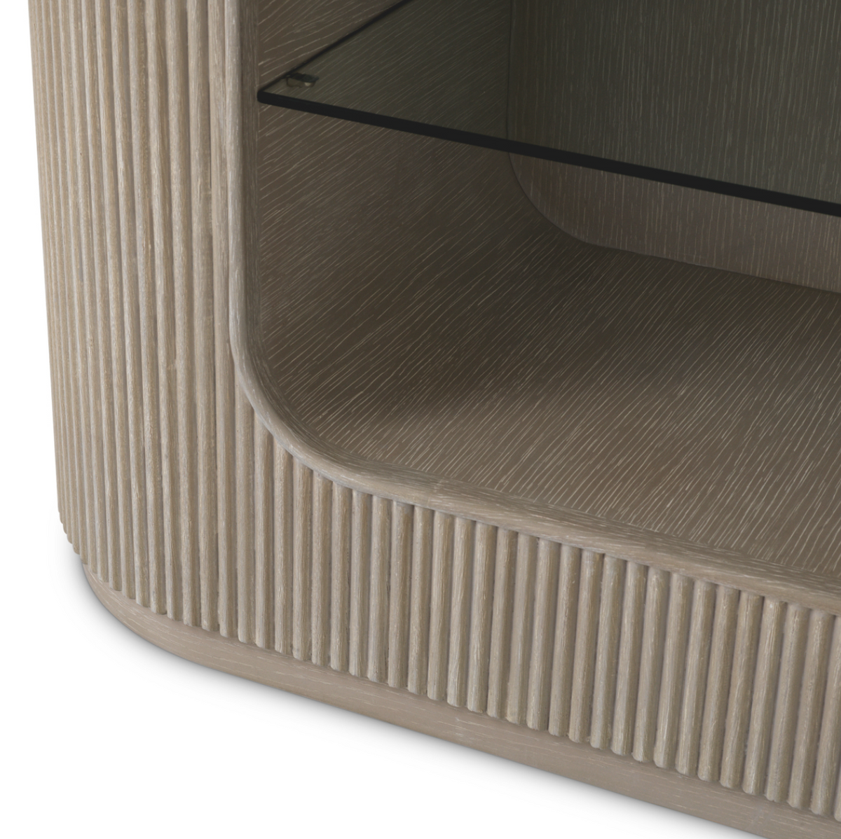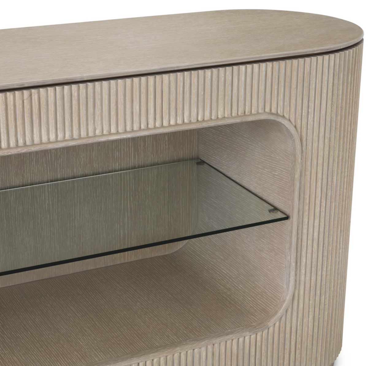 • The Eichholtz Bogota sideboard, crafted from washed oak veneer with grooved solid wood panels, brings a modern texture and timeless design to any interior.
