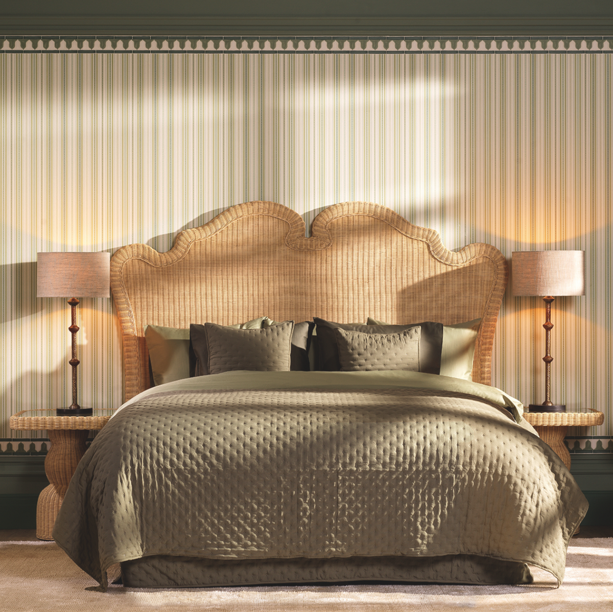 The neutral, cylindrical shade blends beautifully with various textures and colors, providing a soft, pleasant light. The lamp is perfect on a side table next to an armchair as reading light or on a bedside table, giving the bedroom an elegant, hotel-style feel.