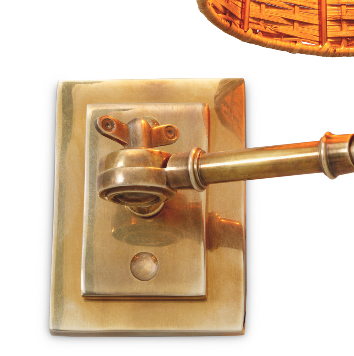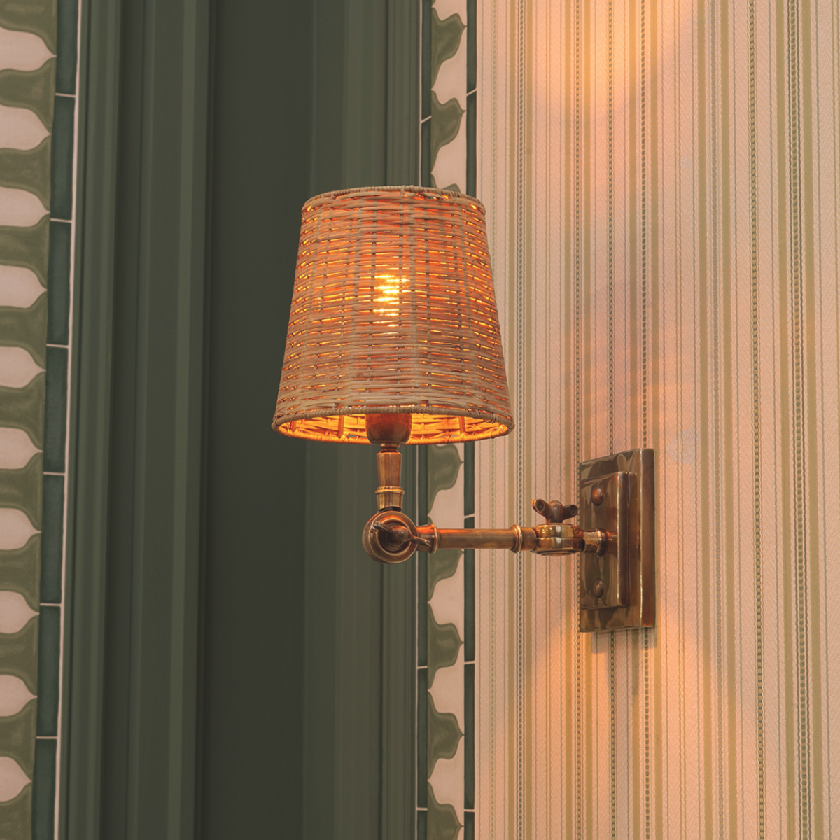 - The Wentworth Single wall lamp from Eichholtz is an elegant lighting fixture inspired by the style of boutique hotels. Its adjustable arm and rattan shade, combined with a vintage brass finish, create a functional and stylish accent.
