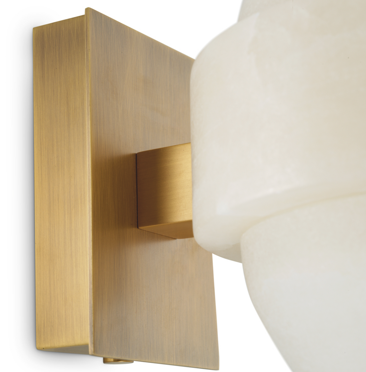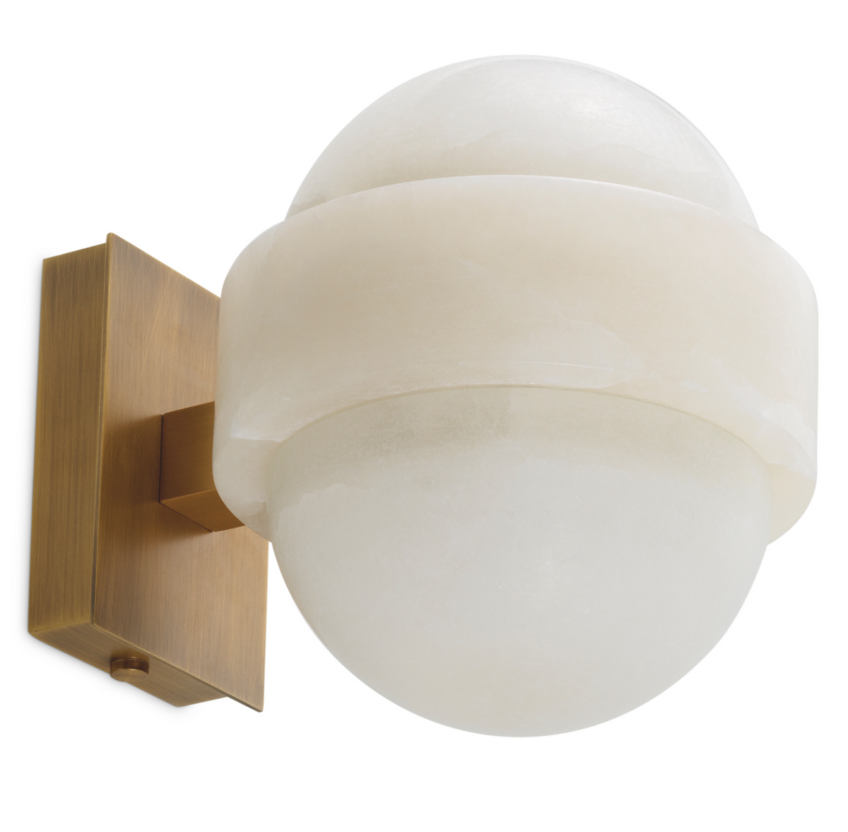- The Icarus wall lamp by Eichholtz is a harmonious combination of alabaster and antique brass. The natural veining of the stone gives each piece a unique character, creating a warm, elegant light for stylish interiors.