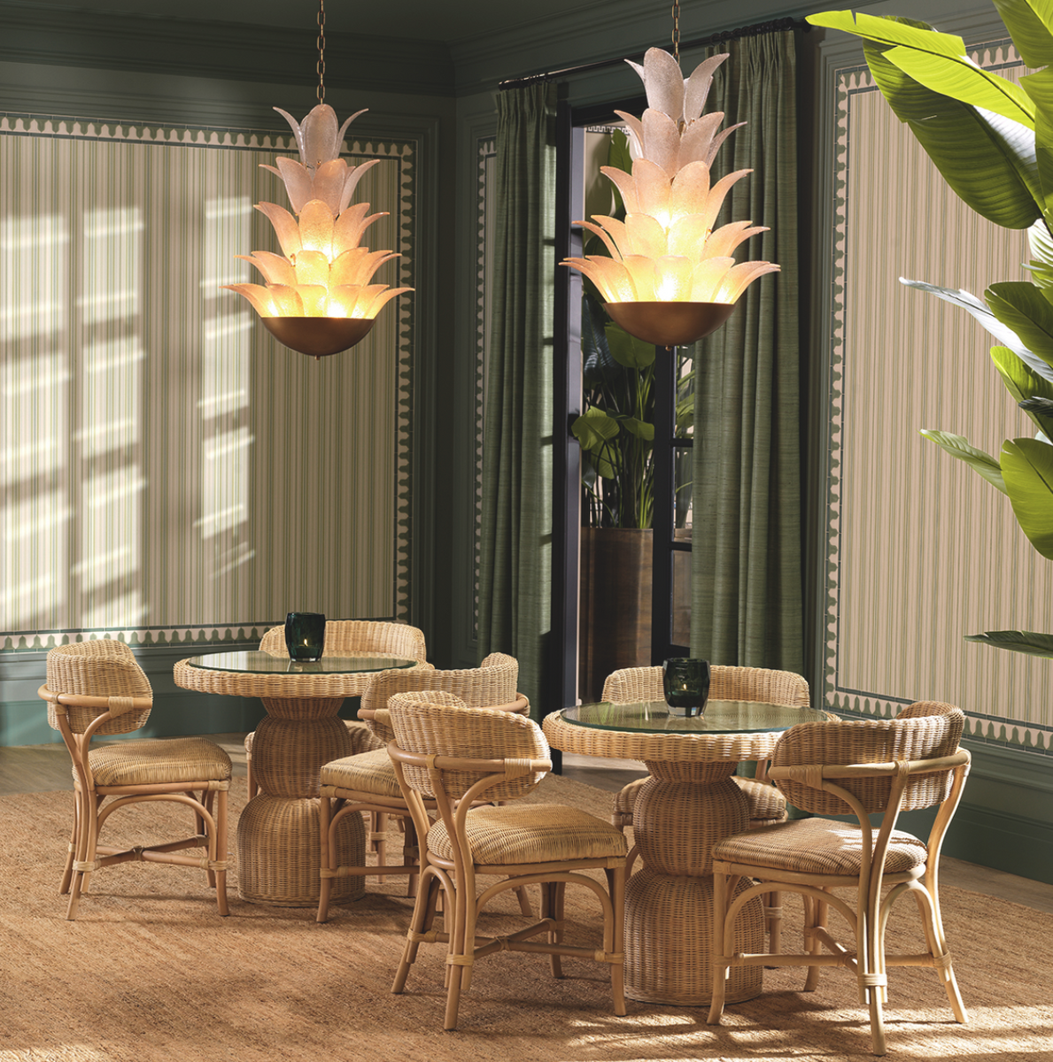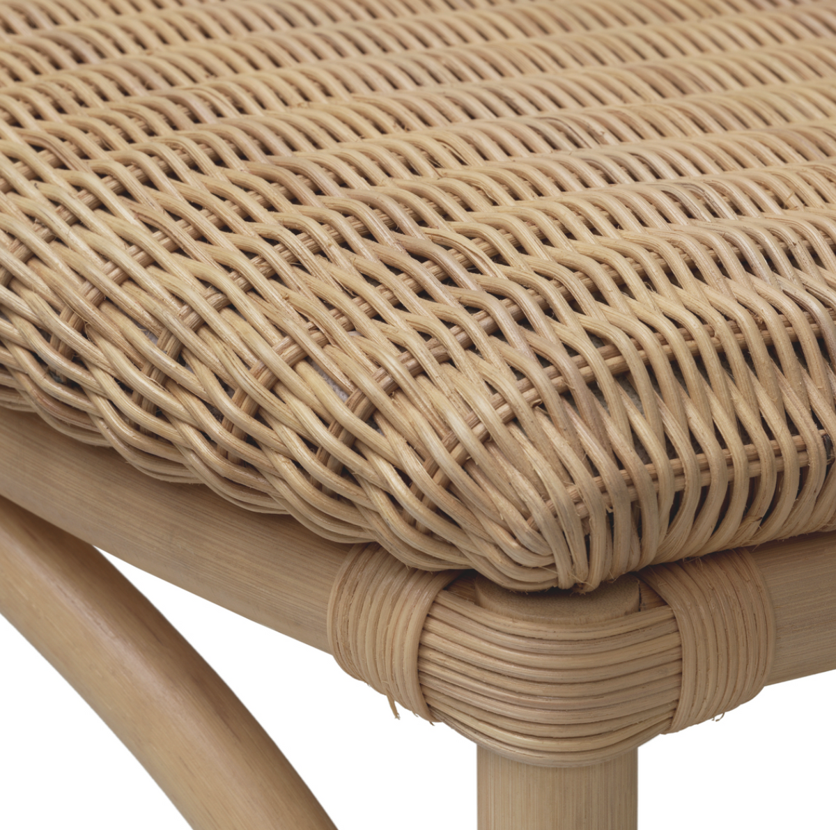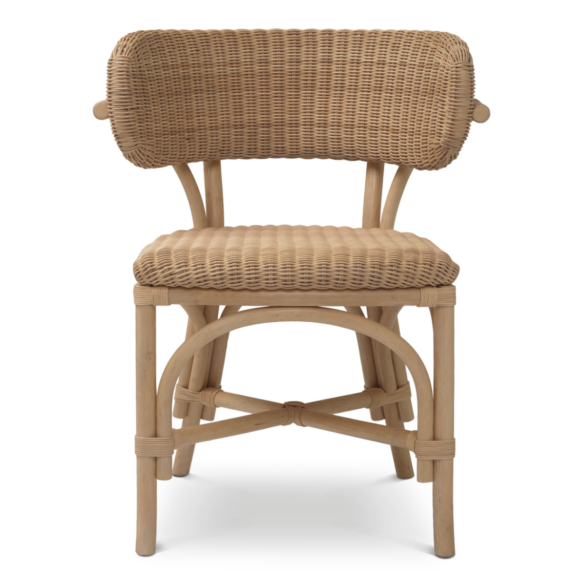 • The Eichholtz Ewan chair, crafted from natural rattan, combines modern aesthetics with traditional craftsmanship. The woven structure lends it a light, relaxed, yet elegant feel.