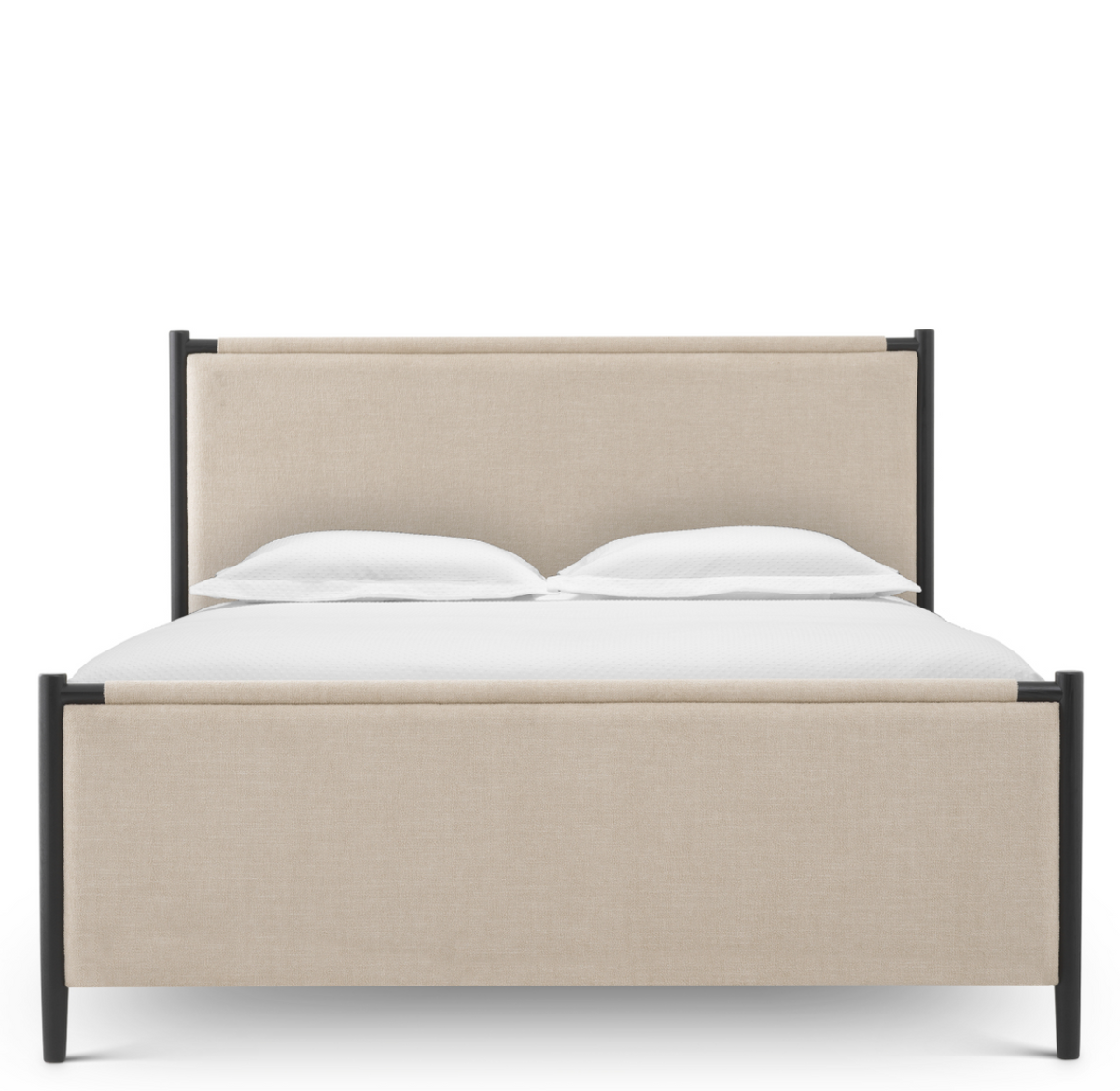 - The Bellingham bed frame by Eichholtz is an elegant combination of a black finish and ecru Renato fabric upholstery. Its well-thought-out design and slatted frame ensure comfort and timeless style in the bedroom.
