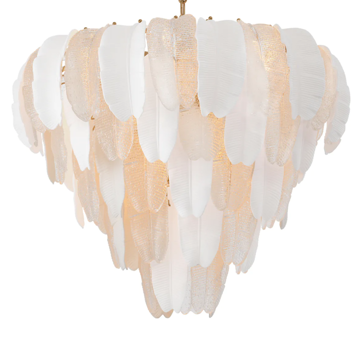 - The Saint Lucia L chandelier by Eichholtz features a unique design inspired by banana leaves. The combination of white ceramic and clear, textured glass creates a light, elegant effect and a natural accent in any interior. Dimensions: Ø 81 | H 65 cm