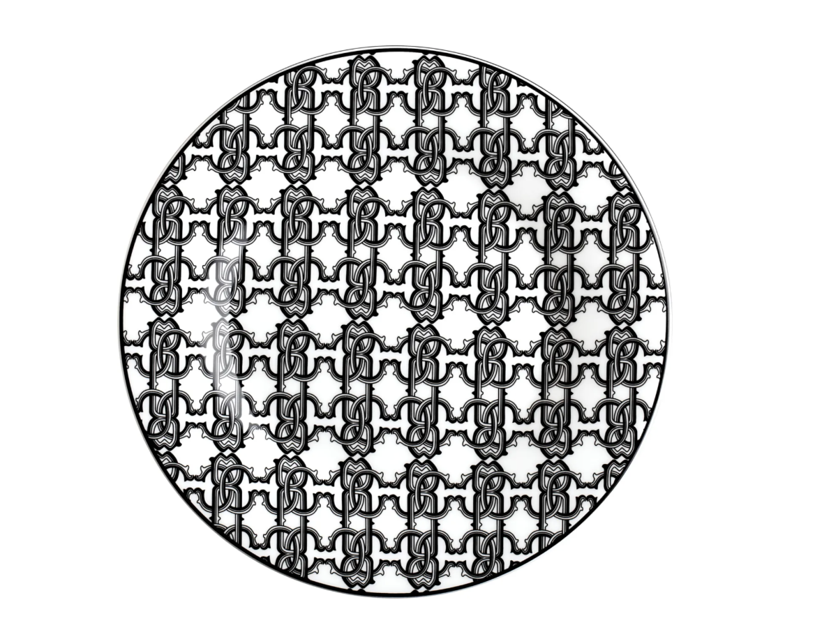 - This set of six Roberto Cavalli Home dessert plates from the Monogram Black collection is a luxurious offering with a baroque character. The black decoration creates a cohesive, striking composition on the table.